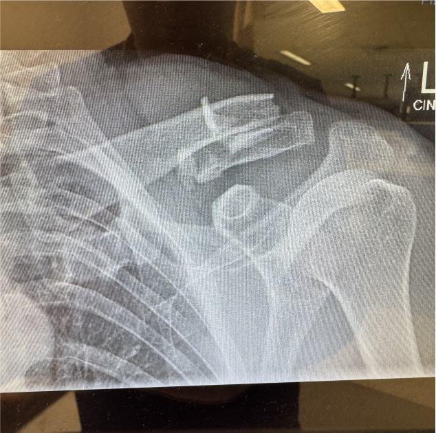 Here’s where the story gets wild — no blood. Not a scratch on him, though the x-rays later confirmed a broken collarbone and a few ribs that now double as percussion instruments. He’s currently at home, recovering like a champ and waiting for surgery, saying things like: